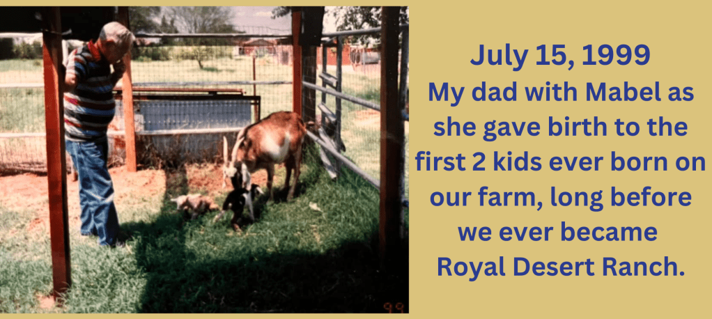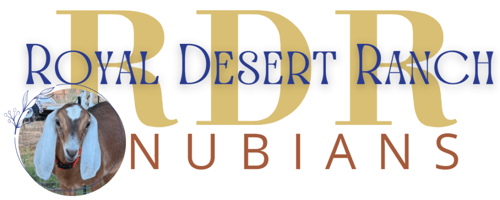 We raised American Nubians for quite some time before purchasing our first registered purebred Nubian doe from Black Mesa Ranch in April 2015 (learn more abut her on the Doe Pen page). In March 2017, we bought Reuel Ginghams Royal Gallifrey also from Black Mesa and with Royal as our first purebred, registered herd sire on Desert Lane… the name Royal Desert was born and it fit like it was meant to be!