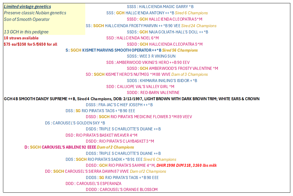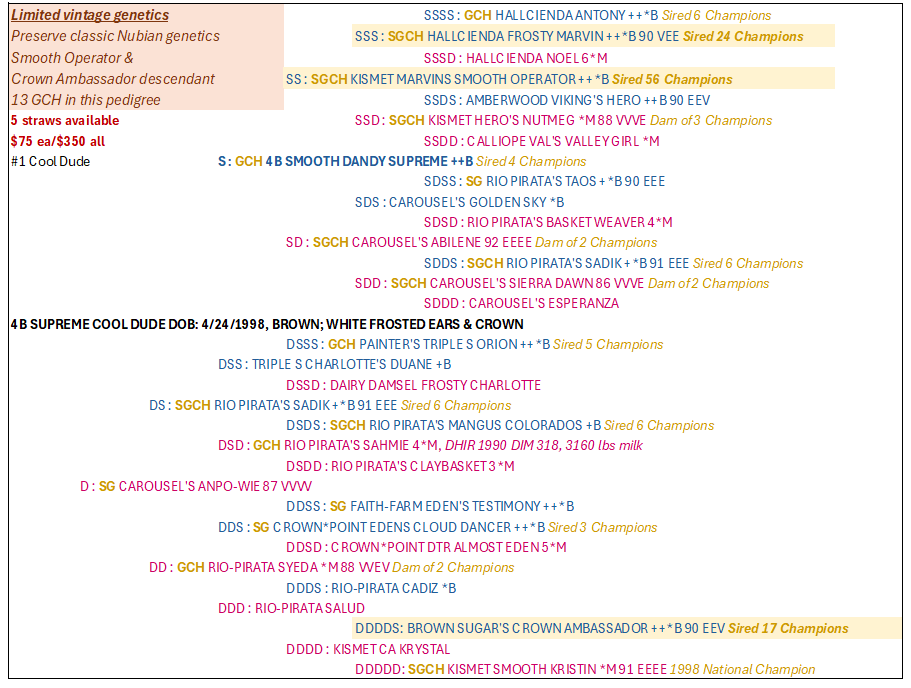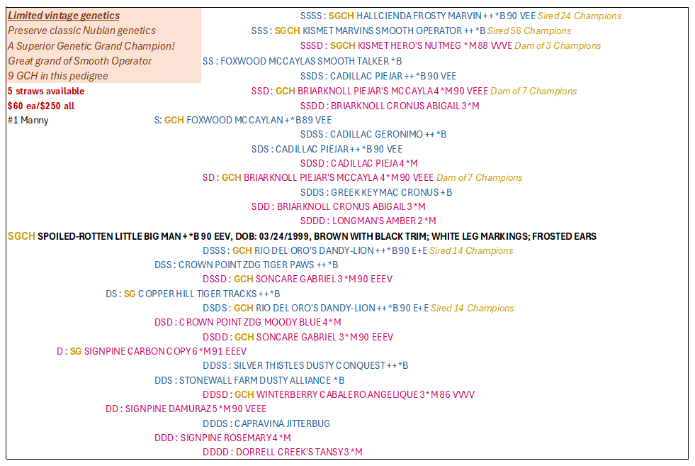 SEMEN STRAWS AVAILABLE FOR THE FOLLOWING BUCKS