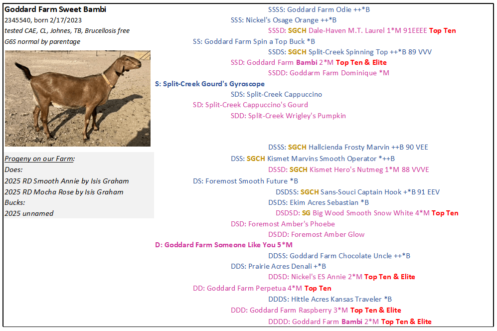 SEMEN STRAWS AVAILABLE FOR THE FOLLOWING BUCKS
